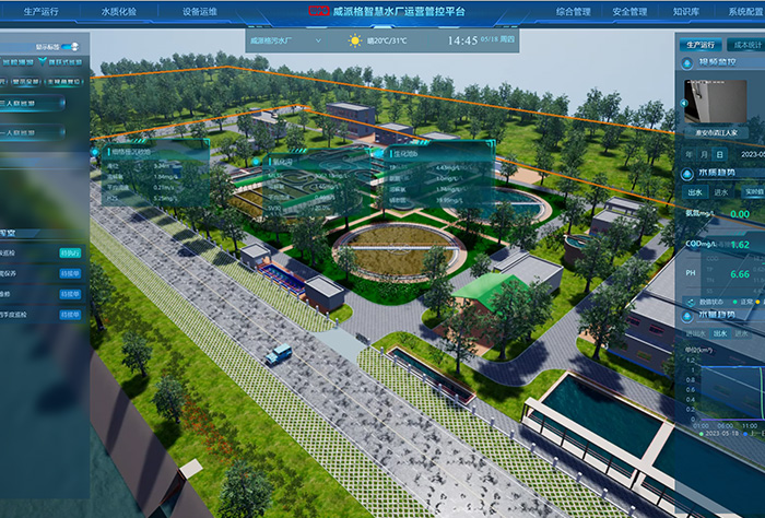 采用機理模型、經驗模型和大數據算法相結合,通過有關水質處理數據、能量數據以及操作條件等的建模模擬,實現(xiàn)真實污水工藝的模型化和虛擬化,提供水質預測預警、工藝診斷和輔助決策,為污水廠科學化、精細化和智慧化管理提供支撐。